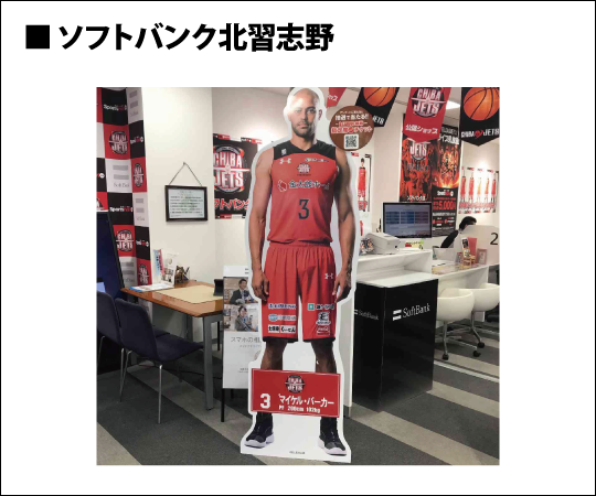 ソフトバンク公認ショップに等身大パネルが登場 千葉ジェッツ
