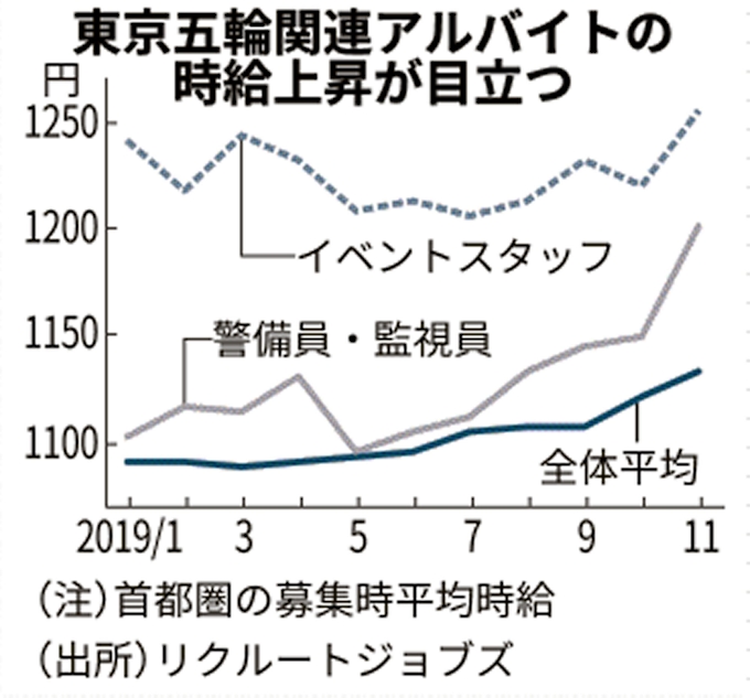 五輪バイト 高額で大量募集 時給押し上げの一因に 日本経済新聞