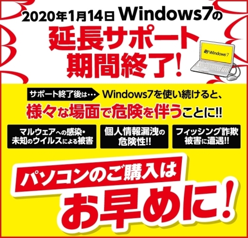 パソコン 1 14 Windows7サポート終了 エディオン ナガサカデンキのニュース まいぷれ 岡崎 幸田