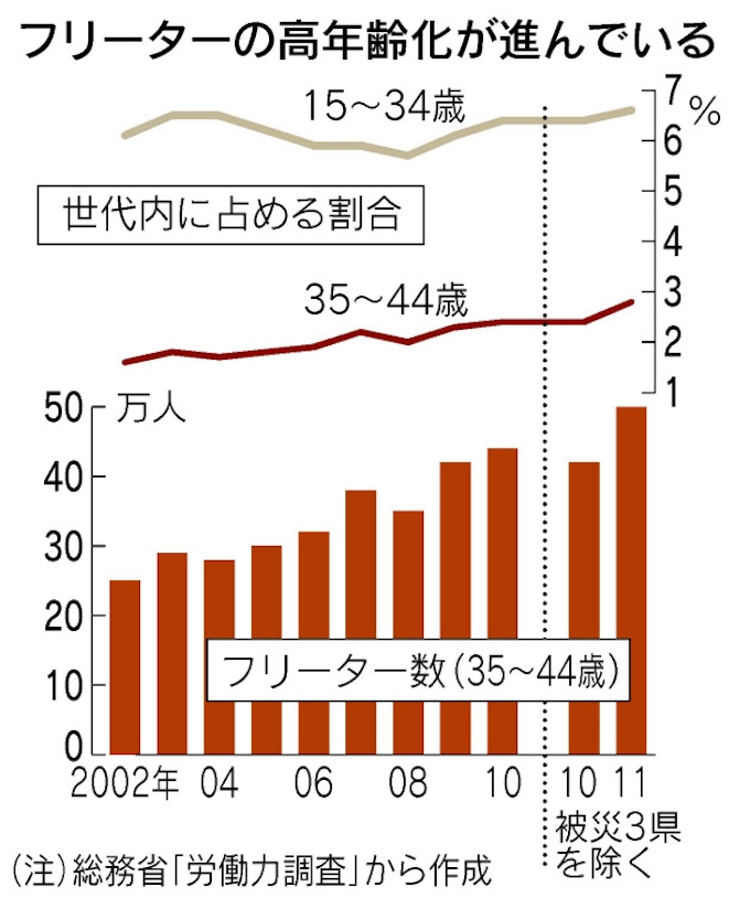 フリーター 進む高年齢化 35 44歳 最高50万人 日本経済新聞